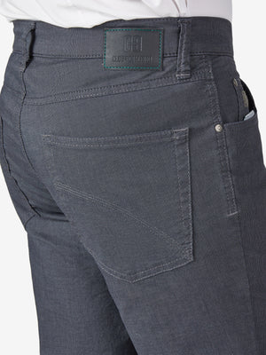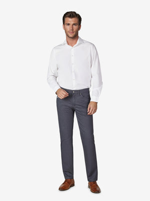 Bequeme 6-Pocket mit elastischem Doppelstoffbund und Hemdstopper. Der Clou: In der rechten Vordertasche ist eine separate "Mobile Pocket" eingearbeitet, in der man sein Smartphone kratzsicher und schnell griffbereit unterbringen kann. Die Münztasche mit Kontrast-Patch bringt einen Hauch Sportivität in den Look. Gefertigt aus einer Baumwoll-Mikrostruktur in Woll-Optik. Dieser Wool-Look bricht gekonnt mit klassischen Dresscodes. Gewicht: 300 g/lfm Dieses Modell verfügt über eine normale Leibhöhe und ein schlankes Bein bei schmaler Fußweite