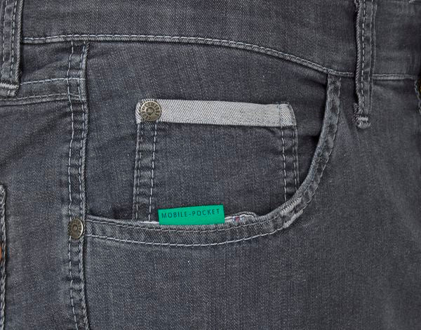 Bequeme 6-Pocket mit elastischem Doppelstoffbund und Hemdstopper. Der Clou: In der rechten Vordertasche ist eine separate "Mobile Pocket" eingearbeitet, in der man sein Smartphone kratzsicher und schnell griffbereit unterbringen kann. Gefertigt aus einem hoch elastischen Super High Stretch-Denim. Durch die Lycra dual-FX®-Technologie im Elasthanfaden erreicht man trotz hoher Dehnung eine große Elastizität und beste Formstabilität. Dieses Modell verfügt über eine normale Leibhöhe und ein schlankes Bein bei schmaler Fußweite.