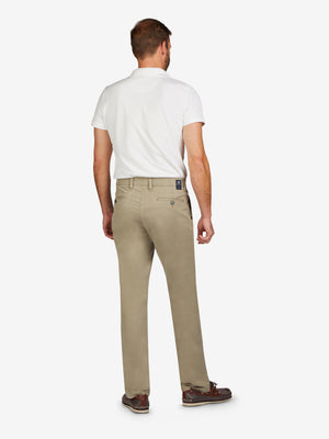 Comodo pantalone piatto con elastico in vita e fermacamicia. Inoltre, la tasca di sicurezza con zip nella tasca posteriore destra. Realizzati in cotone altamente elasticizzato con finitura a rombi per un look sofisticato e una sensazione di morbidezza. Peso: 320 g/rm Questo modello ha una vita regolare e una gamba dritta.