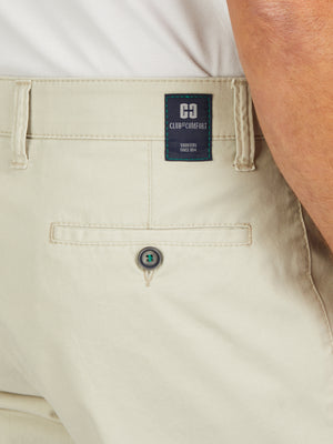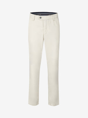 Comodo pantalone piatto con elastico in vita e fermacamicia. Inoltre, la tasca di sicurezza con zip nella tasca posteriore destra. Realizzati in cotone altamente elasticizzato con finitura a rombi per un look sofisticato e una sensazione di morbidezza. Peso: 320 g/rm Questo modello ha una vita regolare e una gamba dritta.