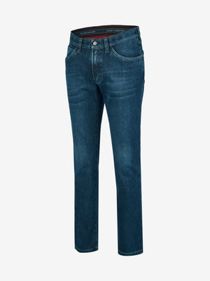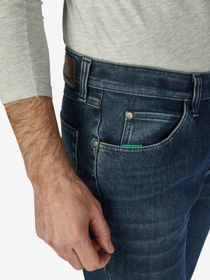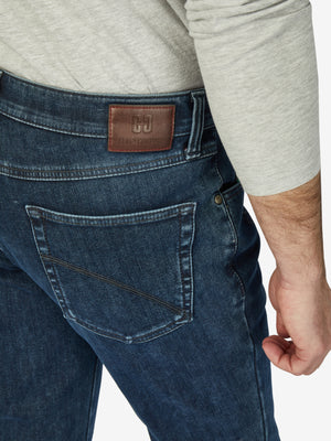 Comodo 6 tasche con elastico in vita in doppio tessuto e ferma-camicia. Il punto forte: nella tasca anteriore destra è stata incorporata una "tasca portacellulare" separata, in cui è possibile riporre lo smartphone a prova di graffio e a portata di mano. Realizzato in tessuto Broken Twill di cotone ad alta elasticità con isolamento termico Thermolite. Un tessuto high-tech in microfibre THERMOLITE® è incollato direttamente sul retro del tessuto, costituito da fibre cave in cui l'aria calda viene immagazzinata e rilasciata nuovamente quando necessario. Peso: 440 g/rm Questo modello ha un'altezza normale e una gamba sottile con una larghezza del piede ridotta.